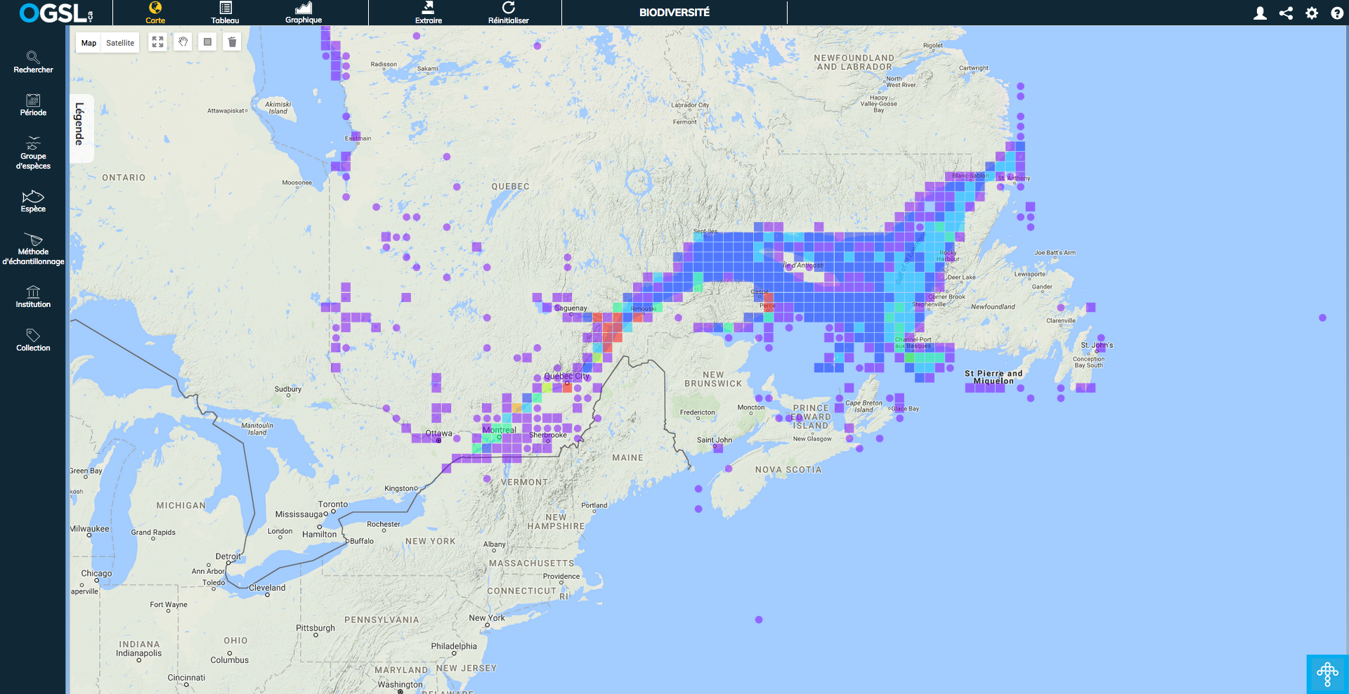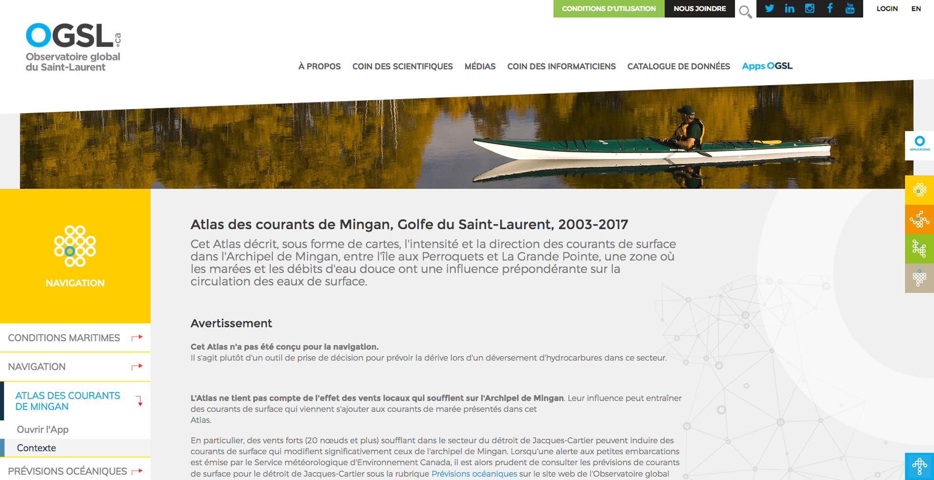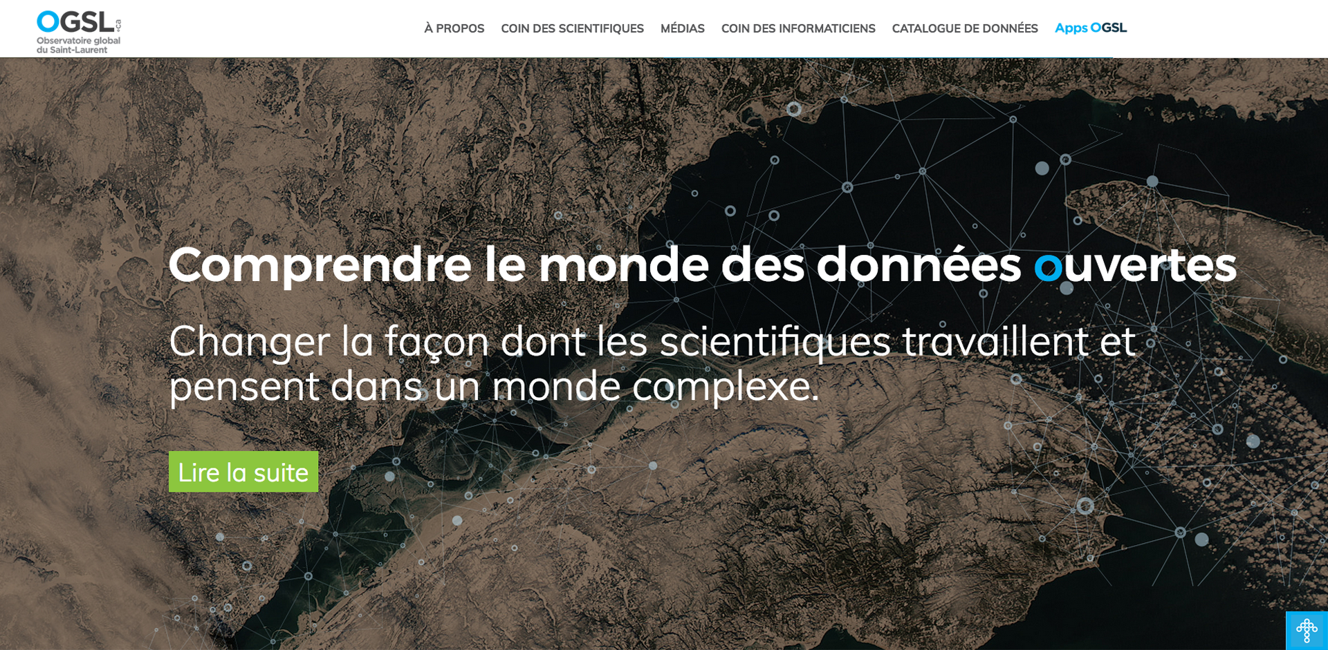 A significant amount of information regarding the entire St. Lawrence – Great Lakes ecosystem is produced on a continuous basis by various organizations operating within the territory (ministries, research organizations, management organizations, etc.). Our challenge was to reflect this visually. Solution: a data grid with intersecting points that was overlayed on the St. Lawrence river to show the significant impact SLGO has for its stakeholders.